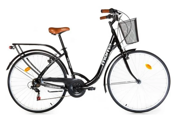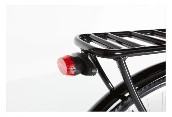 | Accessoires | Porte-bagages en aluminium integré au cadre / Panier / Protège-chaîne / Garde-boue / Phare avant et arrière / Béquille / Sonnette |